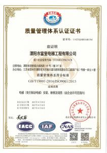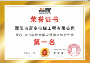 溧陽市富奎電梯工程有限公司 溧陽市富奎電梯工程有限公司是于二OO八年一月九日在原前身溧陽市電梯工程公司基礎(chǔ)上成立的,是專業(yè)從事電梯銷售安裝維修、保養(yǎng)的企業(yè)。是國家質(zhì)監(jiān)總局頒發(fā)的特種設(shè)備安裝、改造、維修A級(jí)安裝許可證單位。公司組織機(jī)構(gòu)實(shí)行總經(jīng)理負(fù)責(zé)制,公司下設(shè)管理部、銷售部、安裝維修部、質(zhì)安部、財(cái)務(wù)部,公司另外設(shè)十二個(gè)分公司:四川分公司、江蘇分公司、上海分公司、浙江分公司、湖南分公司、遼寧分公司、山東分...